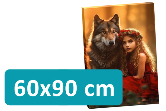 Druk fotoobrazu na płótnie rozpiętym na drewnianej ramie, o wymiarach 60x90 cm.